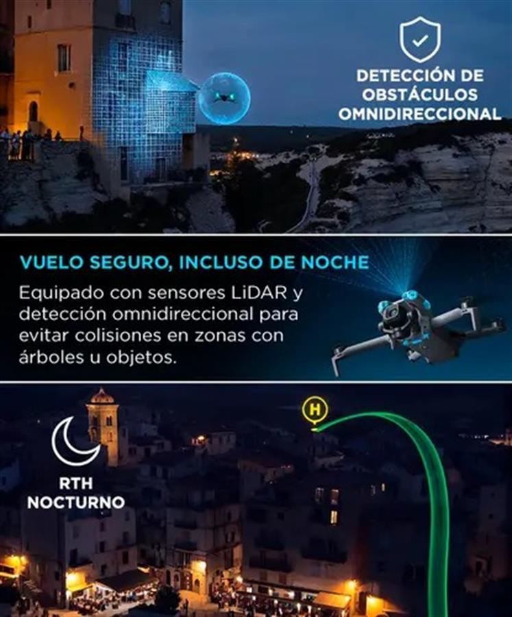 Vuelo seguro con sensores LiDAR y RTH nocturno: