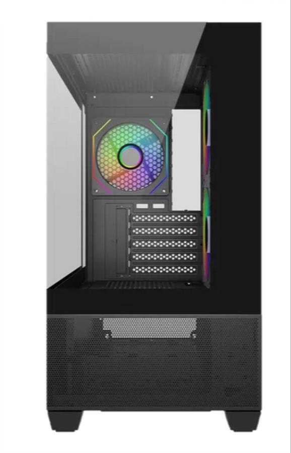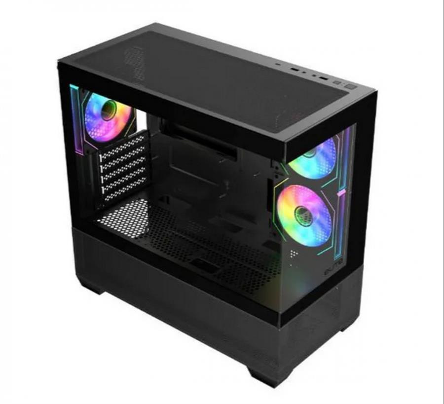 Maximizá la estética de tu setup con el Cooler Master Elite 490, el gabinete compacto mATX que ofrece una espectacular visión de 270° gracias a sus paneles de vidrio templado sin pilares. Equipado con 3 ventiladores ARGB preinstalados y capacidad para un radiador de 360 mm, garantiza una refrigeración de alto nivel en un formato eficiente. Su chasis espacioso soporta placas de video de última generación de hasta 425 mm y cuenta con un panel frontal con puerto USB-C de 20Gbps para transferencias ultra rápidas. Gracias a su diseño con malla en la parte superior e inferior y gestión de cables optimizada, lograrás un armado profesional, limpio y visualmente impactante. ¡La base perfecta para construir una estación de batalla moderna que luce cada detalle de tu hardware!