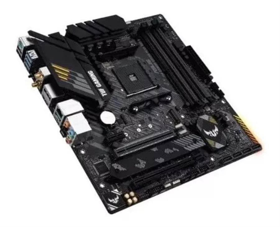 Motherboard AMD B550 (Ryzen AM4) micro ATX para gaming con PCIe® 4.0, ranuras M.2 dobles, 10 etapas de alimentación DrMOS, Wi-Fi 6, Ethernet de 2.5 Gb, HDMI, DisplayPort, SATA a 6 Gbps, USB 3.2 Gen 2 Tipo-A y Tipo-C®, BIOS FlashBack™ y compatibilidad con iluminación Aura Sync RGB.