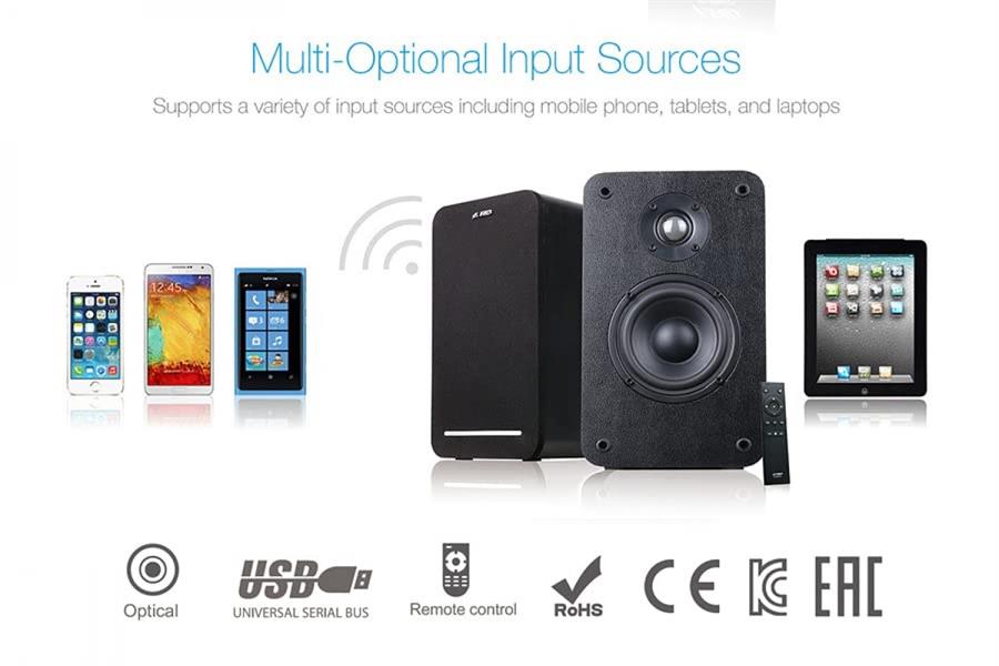 El parlante FYD Fenda R40BT Black ofrece sonido estéreo de alta calidad con una potencia total de 60 W RMS (2 × 30 W). Incorpora conectividad Bluetooth 5.0, entrada auxiliar, USB y óptica, ideal para uso multimedia en escritorio. Su diseño en madera proporciona una mejor acústica, con woofer de 4″ y tweeter de 1″ para graves potentes y agudos nítidos. Viene con control remoto y controles físicos para volumen, graves y agudos. Es una opción completa para quienes buscan buen sonido y conectividad en un formato compacto y elegante.