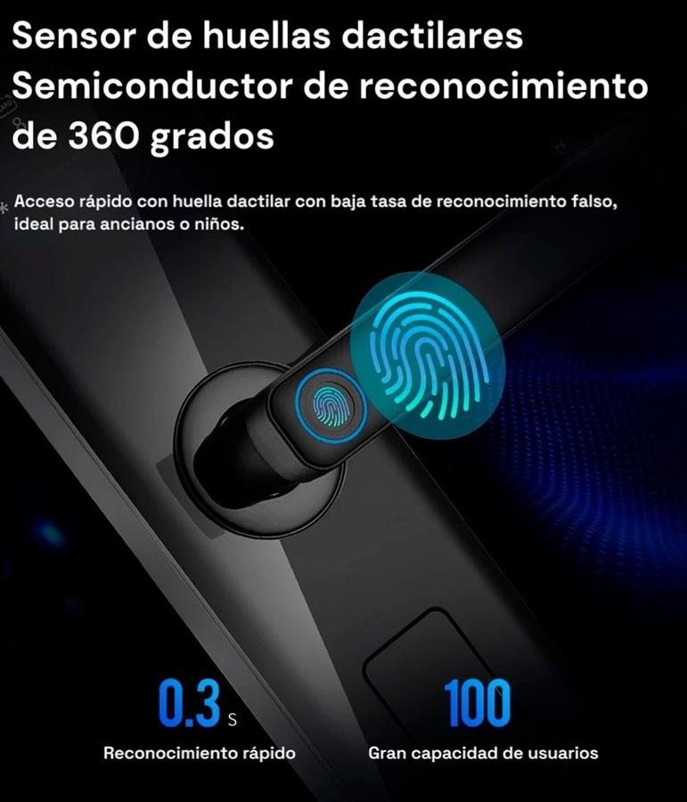 Compatible con WiFi y la aplicación Tuya, gestionando accesos desde cualquier lugar. Se adapta a diversas puertas: madera, acero, aluminio y latón, con grosor de 40-90 mm. Fabricada en aleación de aluminio para durabilidad y resistencia.