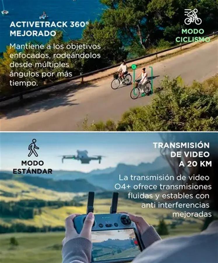 Este combo incluye tres baterías inteligentes, permitiéndote alcanzar hasta 108 minutos de vuelo acumulado. Más oportunidades para crear, explorar y repetir sin interrupciones.