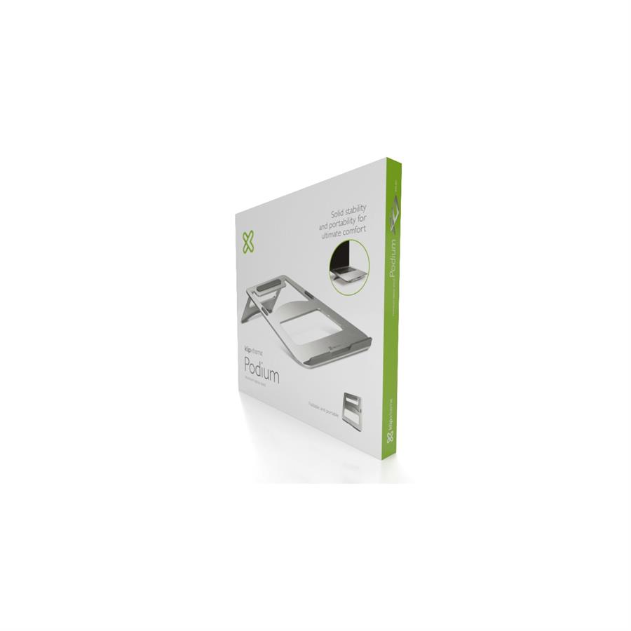 Mejorá tu estación de trabajo con el soporte Klip Xtreme Podium KAS-001, fabricado en aluminio resistente para laptops de hasta 15,6 pulgadas. Su diseño ergonómico eleva la pantalla a una altura ideal, mientras que su panel abierto garantiza una ventilación natural constante para tu equipo. Es ultra liviano y plegable, permitiéndote llevarlo cómodamente en tu mochila a cualquier lugar. Cuenta con almohadillas antideslizantes que aseguran máxima estabilidad y protegen tu escritorio de rayones. ¡Lográ una postura más cómoda y profesional donde sea que trabajes!