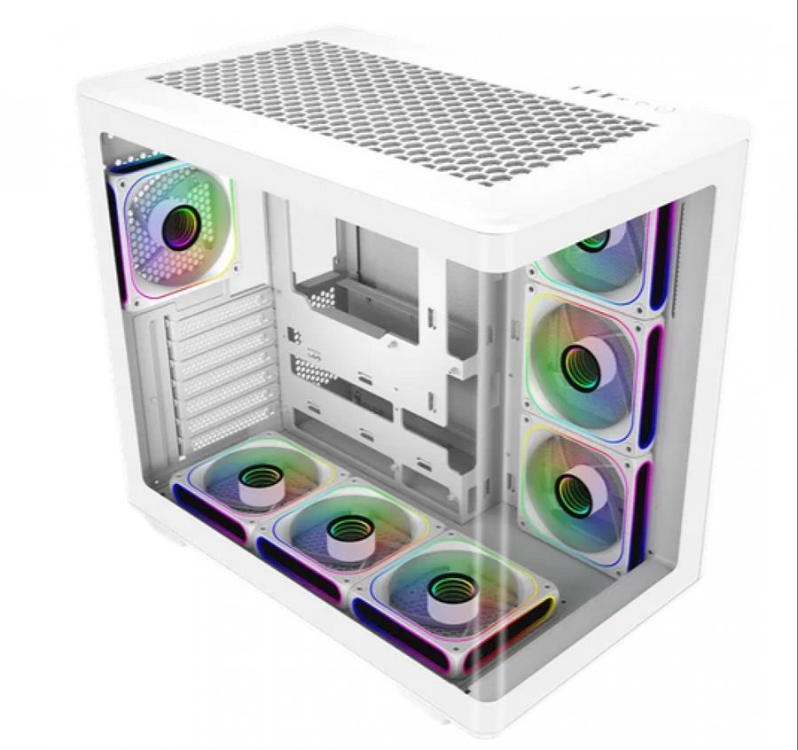 Lográ la estética 'Snow' definitiva con el Cooler Master Elite 600 White, el gabinete panorámico diseñado para lucir tu hardware con una visión total de vidrio templado. Esta versión sin coolers te ofrece la libertad total de personalizar tu sistema de luces y flujo de aire, soportando hasta 10 ventiladores y radiadores de 360 mm. Su chasis ultra espacioso admite placas de video de hasta 425 mm y cuenta con conectividad de última generación con puerto USB-C de 20 Gbps. Gracias a su estructura optimizada para la gestión de cables y acceso sin herramientas, lograrás un armado profesional, inmaculado y visualmente impactante. ¡La base premium ideal para ensambles de alta gama que buscan un diseño de vanguardia!